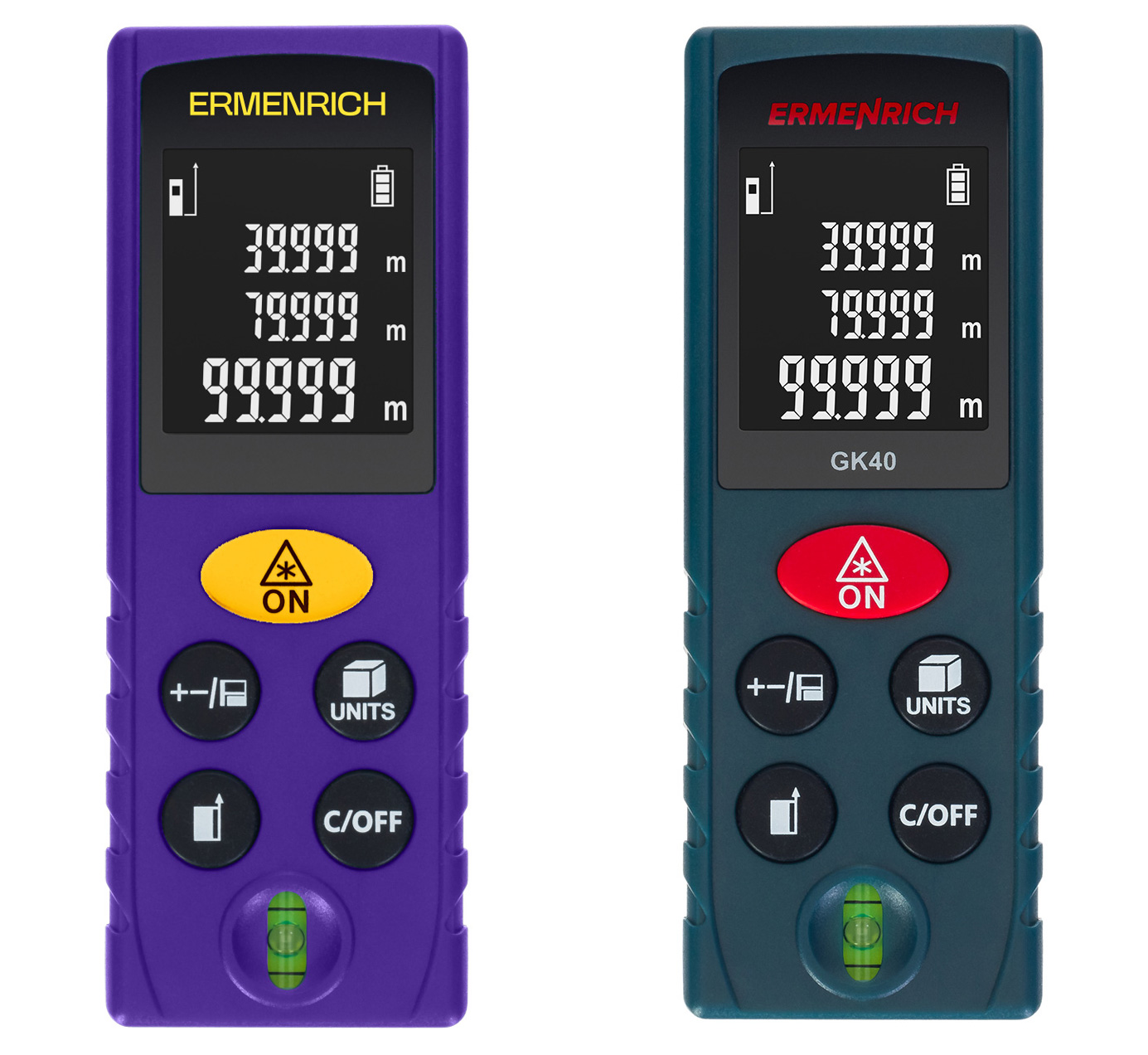 Лазерният измерител Ermenrich Reel PLUS GK40 се използва за решаване на много строителни, ремонтни, инженерни и битови задачи. Той Ви предоставя възможност за извършване на точни измервания в рамките на 40 метра и изчисление на обем и площ. За измерване при трудни условия, когато е невъзможно правилното разполагане на измервателния уред, има функция с използване на Питагоровата теорема, при която се използват индиректни измервания и същата помага за изчисляване на разстоянието до желаната точка. Уредът има също и нивелир с мехурче, който може да се използва за прецизен монтаж на измервателния уред, както и като самостоятелен инструмент.