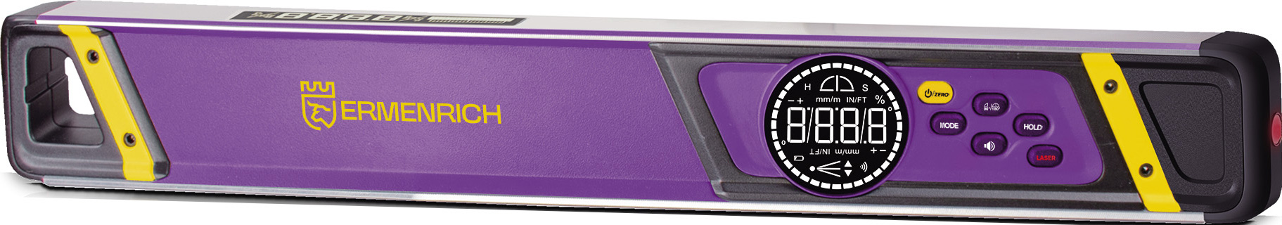 Моделите Ermenrich имат разширена функционалност и повишена точност на измерване. Повечето от тях са способни да измерват ъгли на наклон в диапазона от 360 градуса, което ги прави незаменими за сложни монтажни работи и строителство под определен ъгъл.